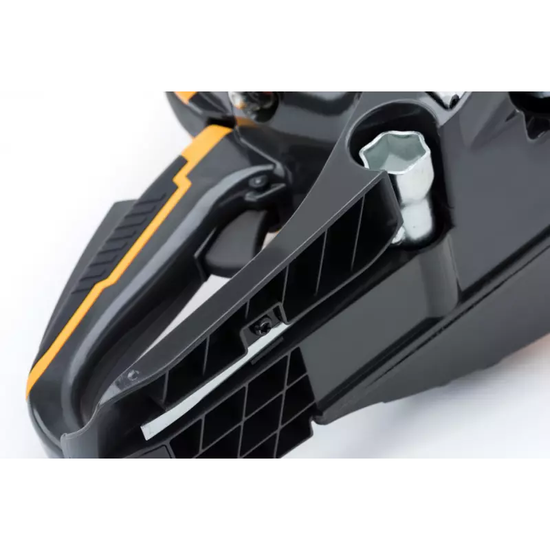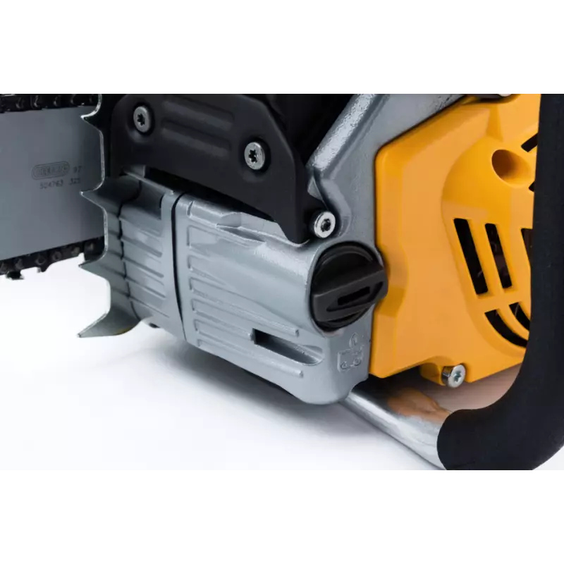 Ręczny i wewnętrzny hamulec łańcucha umożliwia zatrzymanie łańcucha jedną ręką w ciągu 0,089 sekundy, co zapewnia najwyższy poziom bezpieczeństwa na wypadek odbicia.